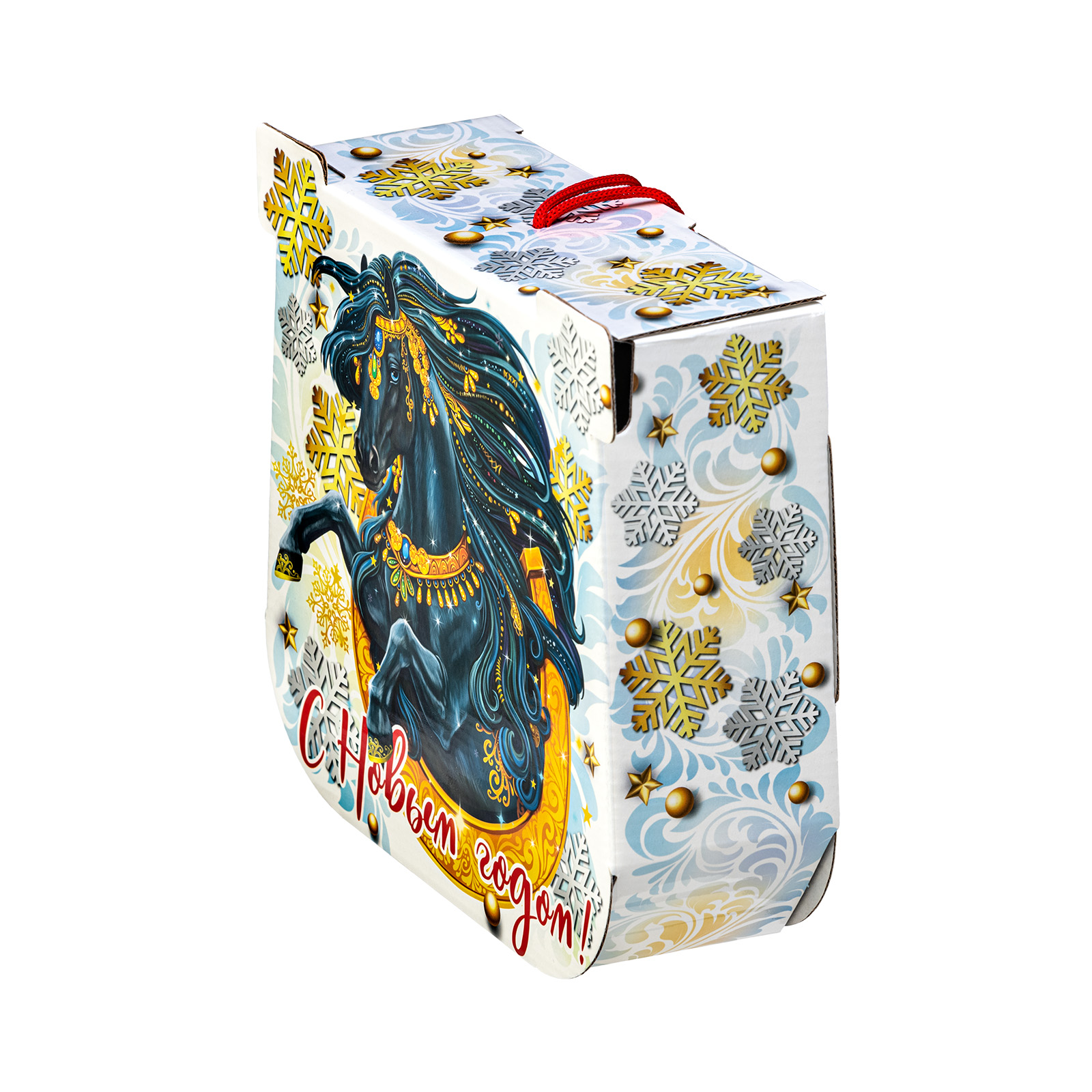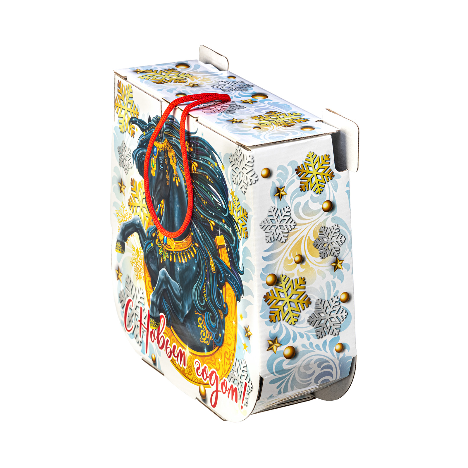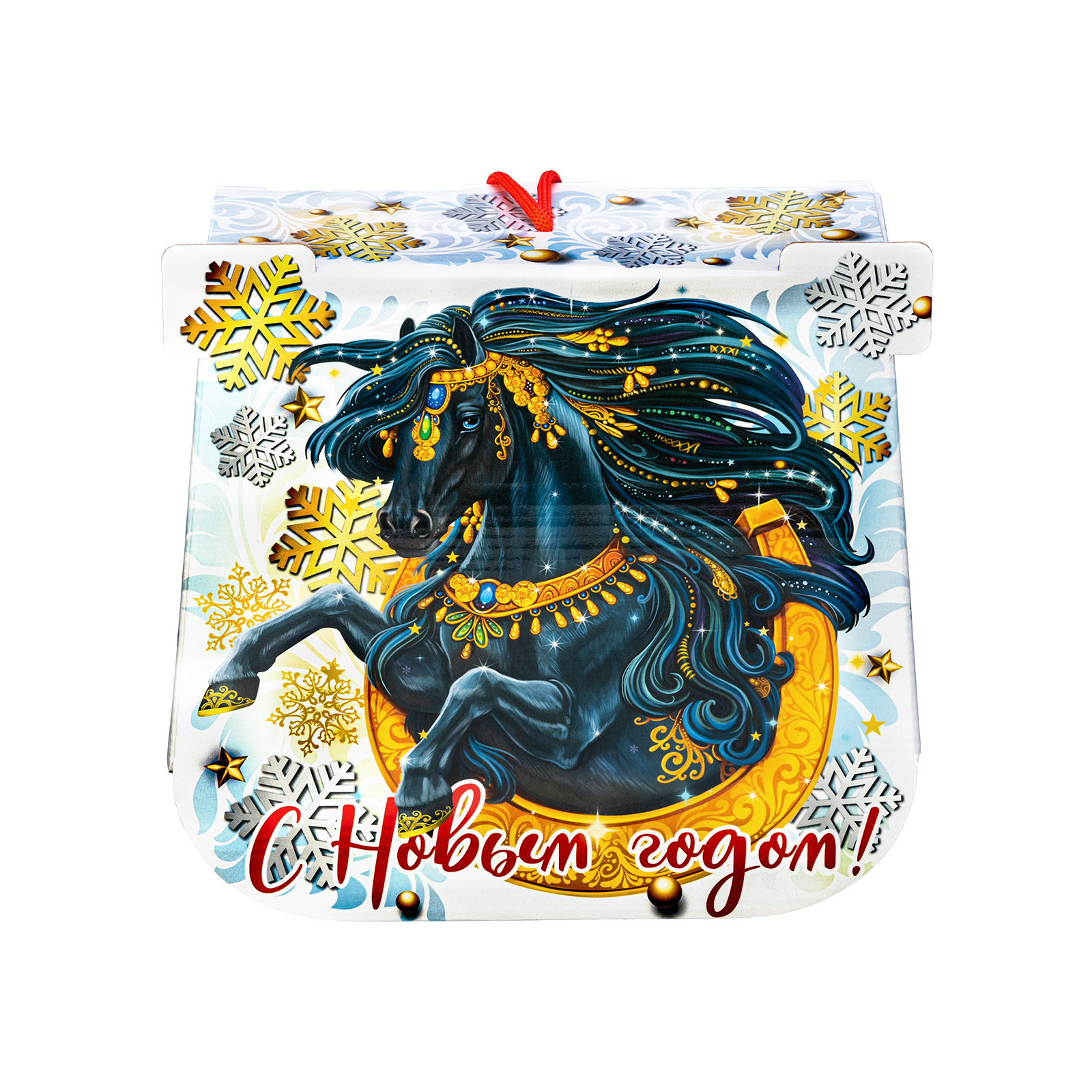 Как при помощи новогоднего подарка создать праздничное настроение на все 12 месяцев? Все просто - нужно подарить сладкий набор с изображением символа наступающего года. Немногие знают, но подкова с древних времен считается символом удачи - не просто так ведь именно ее в древности вешали при входе в дом. Данный подарочный набор повесить не получится, но вот зарядиться теплыми эмоциями от вкусных сладостей можно без труда! За счет оригинального оформления и вкусного сладкого наполнения, такой презент можно смело вручить сластене абсолютно любого возраста! Неповторимый вкус отборных сладостей и яркий дизайн упаковки никого не оставят равнодушным!