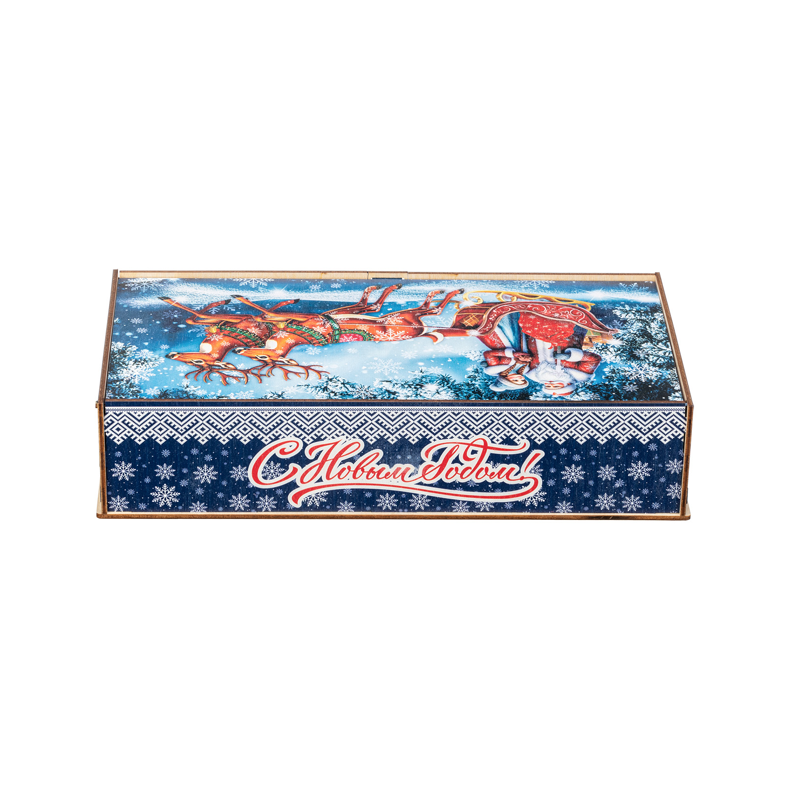 Интересный вариант новогоднего подарка – «Сказочное Путешествие». Он представлен в разделе Дерево. Отлично подойдет на подарок в 2026 году с символом Лошадь. Внутри такого презента находится кондитерский набор весом 1000 граммов.